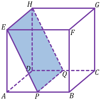 Jika P dan Q masing-masing berada di pertengahan ruas garis AB dan CD, sudut yang terbentuk antara bidang ABCD dengan EPQH dapat diwakili oleh ....