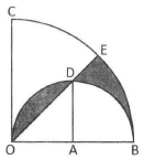 (1). Luas daerah yang diarsir 57cm2 (2). Keliling daerah yang diarsir 67,1cm2 (3). Luas tembereng OD28,5cm2 (4). Keliling daerah arsiran BDE41,4cm