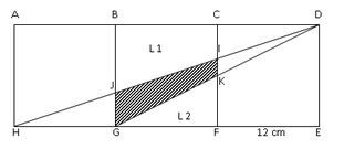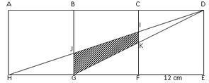 Jika persegi di gambar atas kongruen dengan sisi 12 cm, maka luas daerah yang diarsir adalah…