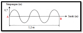 Jika waktu yang diperlukan gelombang untuk merambat dari titik A hingga titik B adalah 0,2 s. Maka pernyataan yang tepat adalah . . .