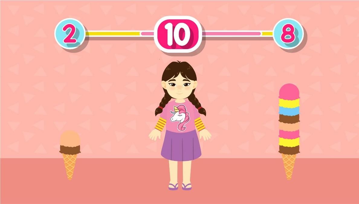 Jumlah es krim yang tepat sehingga membentuk bilangan 10 adalah ....