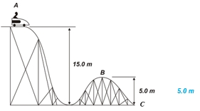 Kereta Roller Coaster bergerak dari titik A dengan kelajuan 12 m/s. Kelajuan kereta Roller Coaster saat di titik B sebesar….