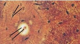Lakuna, osteosit, dan penjuluran sel ditunjukkan oleh nomor ....