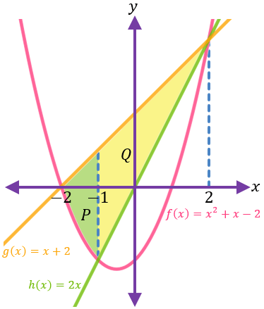 Kedua daerah ini dapat dicari luasnya menggunakan integral.