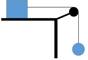 Massa kotak 4 kg dan massa bola 3 kg. Bila lantai kasar dengan , serta tali dan katrol dianggap tidak bermassa sehingga gesekan antara tali dan katrol diabaikan, percepatan kotak sebesar….