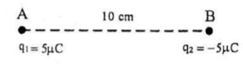 Muatan diletakan pada jarak 5 cm dari , maka kuat medan listrik pada muatan adalah .....