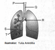 Organ pernapasan yang tersusun atas jaringan epitel bersilia yang dapat menghasilkan lendir ditunjukkan oleh huruf ....
