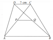 P dan Q adalah titik tengah diagonal trapesium ABCD. Jika panjang , maka panjang AB adalah ....