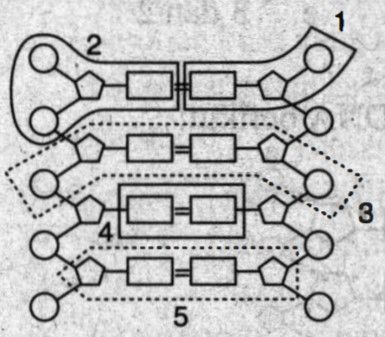 Pada diagram segmen molekul DNA tersebut, bagian yang menunjukkan satu nukleotida ditunjukkan oleh angka....