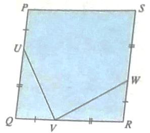 Pada gambar tersebut, PQRS adalah persegi. Panjang PU=QV=RW dan UQ=VR=WS. Buktikan bahwa besar !.