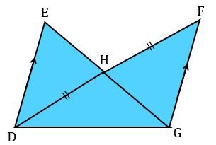 Panjang DH = panjang HF dan DE sejajar GF. Segitiga DEH kongruen dengan segitiga GFH, karena memenuhi syarat….
