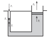 Penampang kiri memiliki jari-jari sebesar 5 cm dan dikenakan gaya sebesar 50 N. Jika gaya yang dialami oleh penampang kanan sebesar 10.000 N, maka luas penampang kanan adalah … cm2.