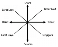 Pernyataan yang benar untuk melengkapi diagram orientasi mata angin di atas adalah ….