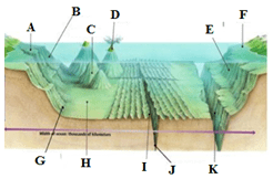 Relief dasar yang berbentuk basin dan continental shelf ditunjukkan oleh huruf ...