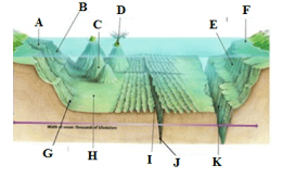 Relief dasar yang berbentuk basin dan continental shelf ditunjukkan oleh huruf….