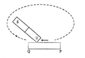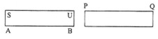 Saat batang besi A – B didekatkan dengan batang P – Q, timbul kutub – kutub magnet seperti pada gambar.