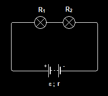 Sebuah baterai dengan ggl 12 V dan hambatan dalam 1 ohm dihubungkan dengan dua buah lampu pijar yang tersusun seri. Jika hambatan masing-masing lampu adalah