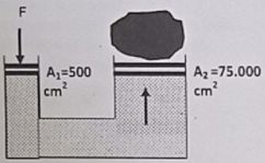 A subscript 1 equals 500 space cm squared A subscript 2 equals 75.000 space cm squared F subscript 2 equals w equals 30.000 space straight N