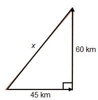 Sebuah kapal berlayar ke timur, kemudian belok ke arah utara sejauh . Jarak terpendek yang dilalui kapal dari titik awal adalah ...