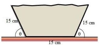 Sebuah talang air akan dibuat dari lembaran seng yang lebamya 45 cm dengan melipat lebamya menjadi tiga bagian yang sama. Jika menyatakan besar sudut antara dinding talang dengan bidang aksisnya, berapa nilai