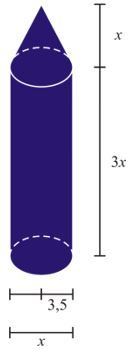 Sebuah tugu berbentuk gabungan dari kerucut dan tabung. Tinggi tabung tiga kali dari tinggi kerucut dan tinggi kerucut sama dengan diameter tabung. Jika jari-jari tabung adalah , maka volume dari tugu tersebut adalah ....