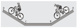 Seorang anak meluncur maju di jalan seperti pada gambar berikut tanpa mengayuh pedal sepedanya. Jenis gerak lurus berubah beraturan (GLBB) yang terjadi pada sepeda melalui lintasan adalah ....