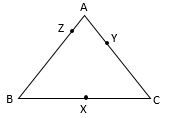 Titik X, Y, Z terletak pada segitiga ABC sehingga AZ = AY, BZ = BX, CX = CY seperti pada gambar. Jika BC, CA, AB berturut – turut adalah a cm, b cm dan c cm, maka 2AY adalah...