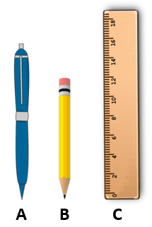 Urutan panjang benda dari yang paling pendek sampai yang paling panjang adalah….