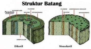 Pernyataan yang benar tentang struktur batang dikotil sesuai gambar adalah ....