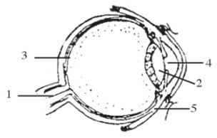 Perhatikan gambar di atas! Bagian mata yang berfungsi untuk tempat masuk cahaya dan mengatur jumlah cahaya masuk adalah nomor….