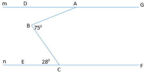 Diketahui garis m sejajar garis n. ∠ABC = 75 dan ∠BCE = 28