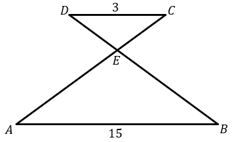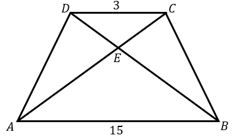 ABCD adalah suatu trapesium beraturan dengan AC dan BD adalah diagonalnya yang berpotongan di titik E. Jika cm, maka panjang CE adalah ... cm.