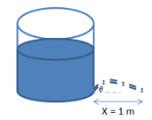 Air dalam tangki memancar keluar melalui dasar tangki dan membentuk sudut