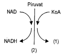 Asam piruvat dari proses respirasi aerob akan mengalami perubahan secara berturut turut yang di tunjukan oleh nomor 1 dan 2 adalah....
