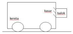 Berapakah percepatan kereta minimal agar balok tidak bergerak ke bawah?