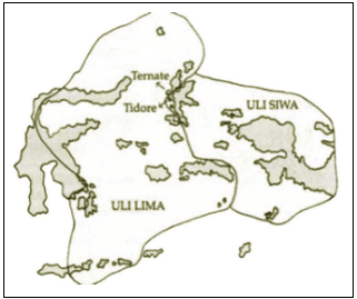 Berdasarkan gambar di atas, wilayah yang termasuk ke dalam persekutuan lima bersaudara (Uli Lima) adalah ….