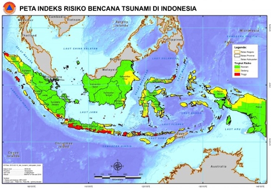 Berdasarkan peta di atas, daerah yang rawan tsunami adalah....