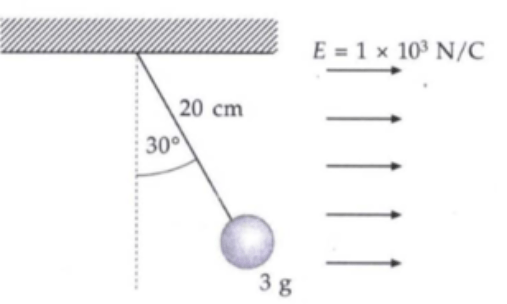Bola dipengaruhi medan listrik sebesar searah dengan X Positif. Akibatnya, bola membentuk sudut dari kedudukan awal. Besar muatan pada bola tersebuta adalah ...