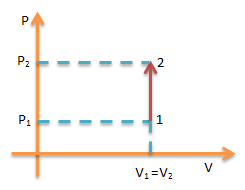 Diagram di atas mendeskripsikan proses isokhorik yang dialami 1 mol gas monoatomik, dimana dan . Pada proses isokhorik, volume gas dijaga konstan, pada kasus ini .