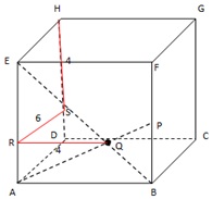 Diketahui kubus ABCD.EFGH dengan P adalah titik tengah BF dan Q adalah titik potong AP dan BE seperti pada gambar. Jika panjang rusuk kubus tersebut adalah 6 cm, maka jarak dari Q ke H adalah….