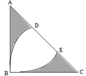 Diketahui segitiga ABC siku – siku di B. Lengkungan BD dan BE berturut – turut adalah busur lingkaran yang berpusar di C dan A. Jika AB = BC = 2 cm, maka luas daerah yang diarsir adalah….
