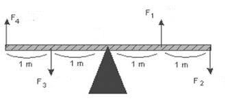 F1, F2, F3 dan F4 berturut-turut sebesar 10 N, 15 N, 5 N, dan 20 N. Momen gaya total pada sistem di atas adalah ....