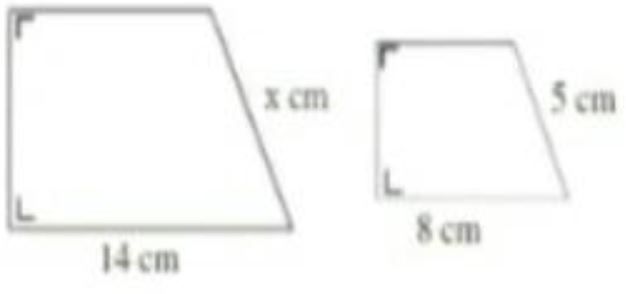 Jika dua buah trapesium pada gambar tersebut sebangun, maka nilai x adalah .... cm