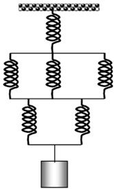 Jika keenam pegas di atas homogen dengan nilai konstanta pegas k = 220 N/m, konstanta pegas pengganti pada sistem tersebut adalah ....