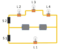 Jika saklar S1 ditutup dan saklar S2 terbuka, maka lampu yang menyala adalah ….