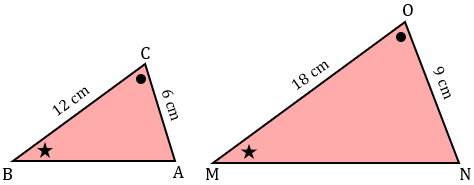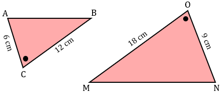 Jika sudut-sudut yang bersesuaian pada ∆ABC dan ∆MNO sama besar, maka pernyataan di bawah ini yang benar adalah ….