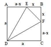 Pada bujur sangkar ABCD diketahui AB = a, E pada AB antara A dan B, F pada BC antara B dan C, dan EB = BF. Luas segitiga DEF yang dapat dibuat dengan pernyataan paling kecil adalah….