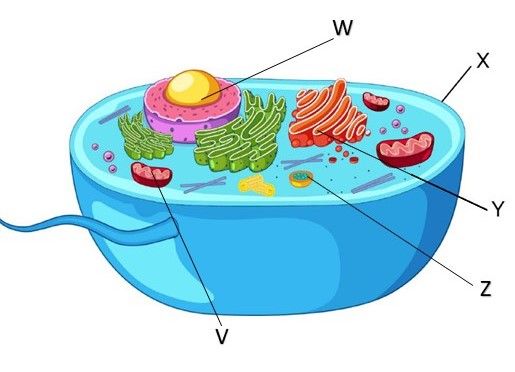 Pada gambar di atas lisosom ditunjukkan oleh huruf ….