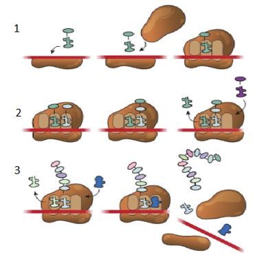Proses yang ditunjukkan oleh nomor 1 dan 2 merupakan tahapan translasi, yaitu ….
