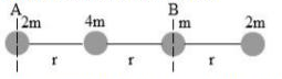 terdapat empat buah partikel yang dihubungkan oleh sebuah batang yang massanya diabaikan. besar momen inersia sistem partikel jika diputar terhadap poros A adalah...